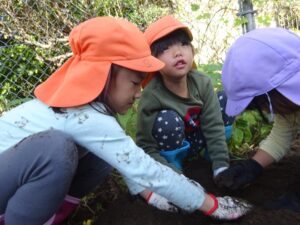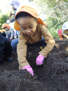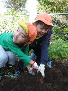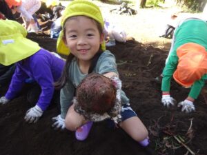 5月に植えたお芋が実ったので皆で芋ほりです。