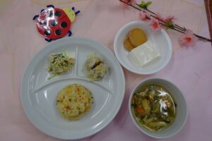 『 中華スープ 』。 おやつは、『 ヨーグルトムース 』、『 クッキー 』でした。